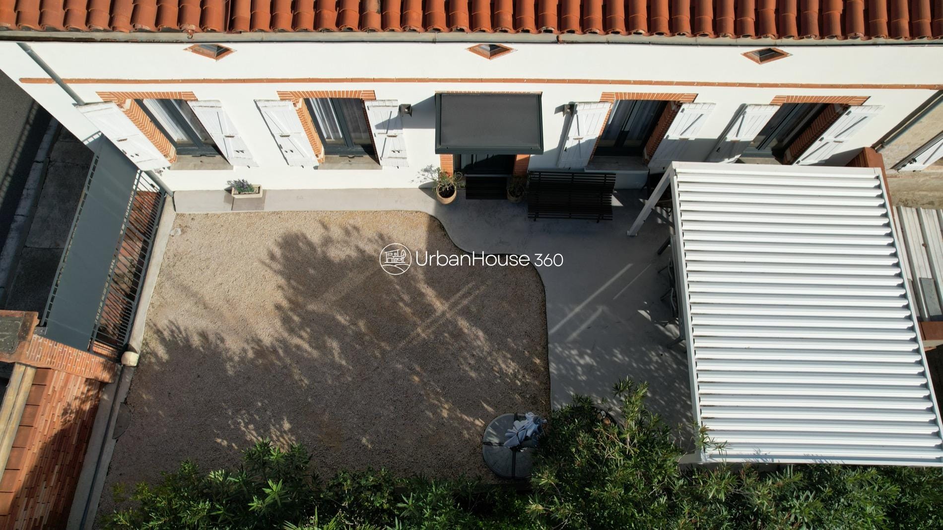 Derrière un portail automatique, une cour extérieure aménagée et végétalisée vous accueille :