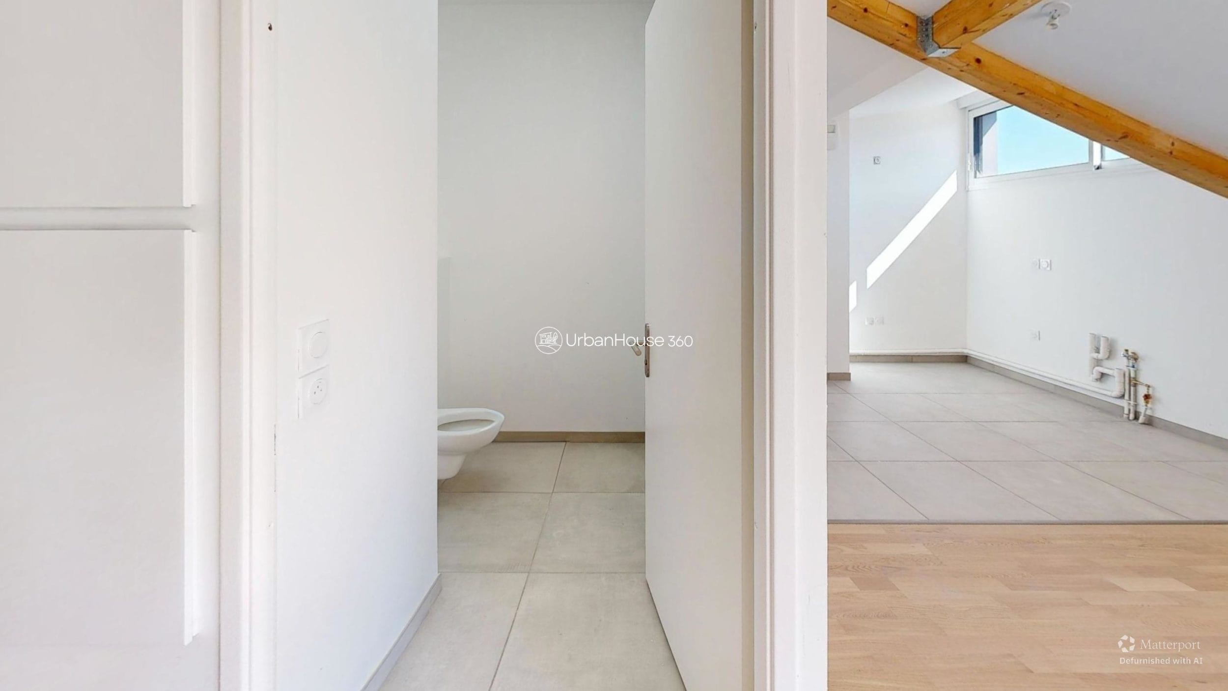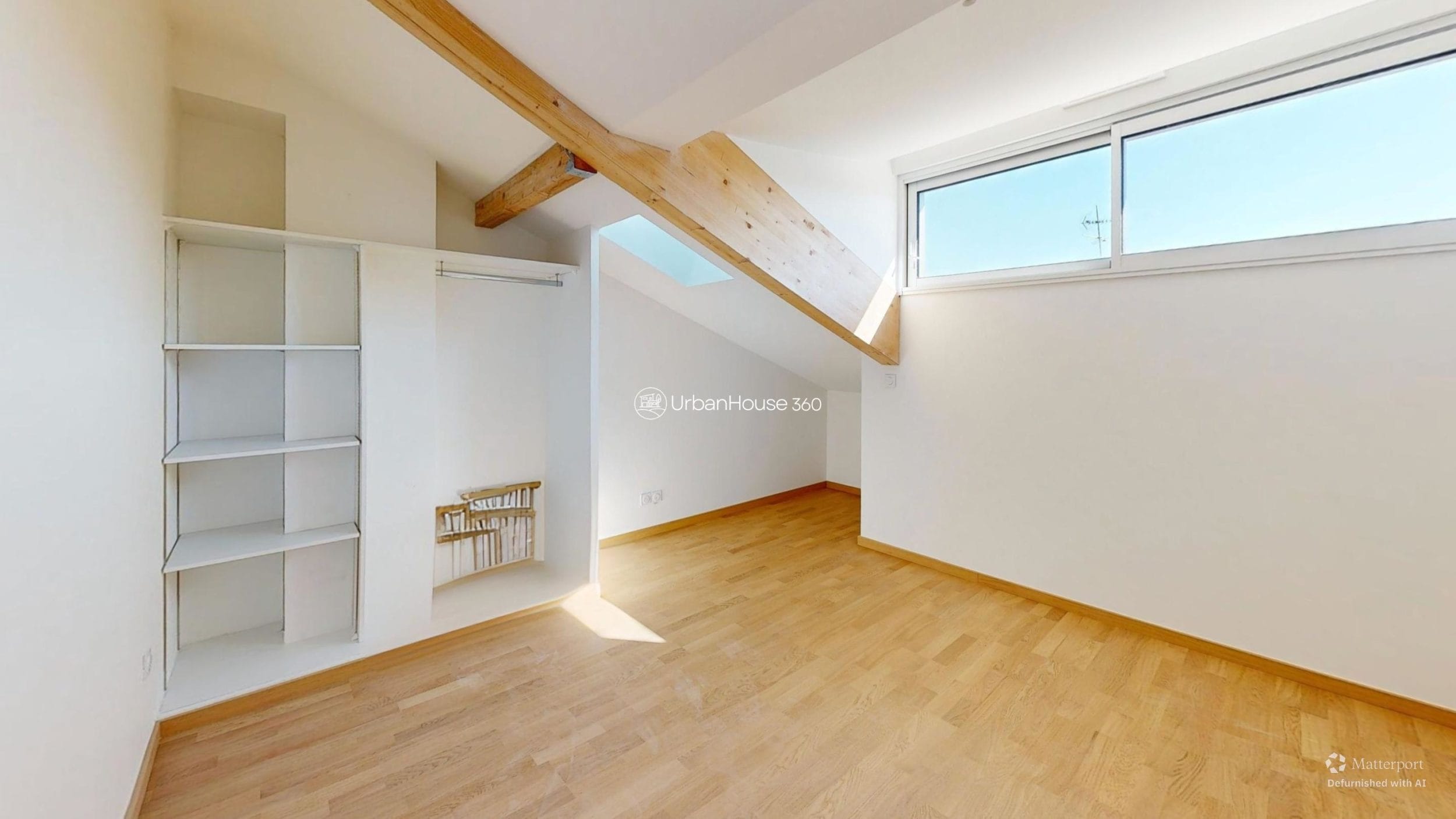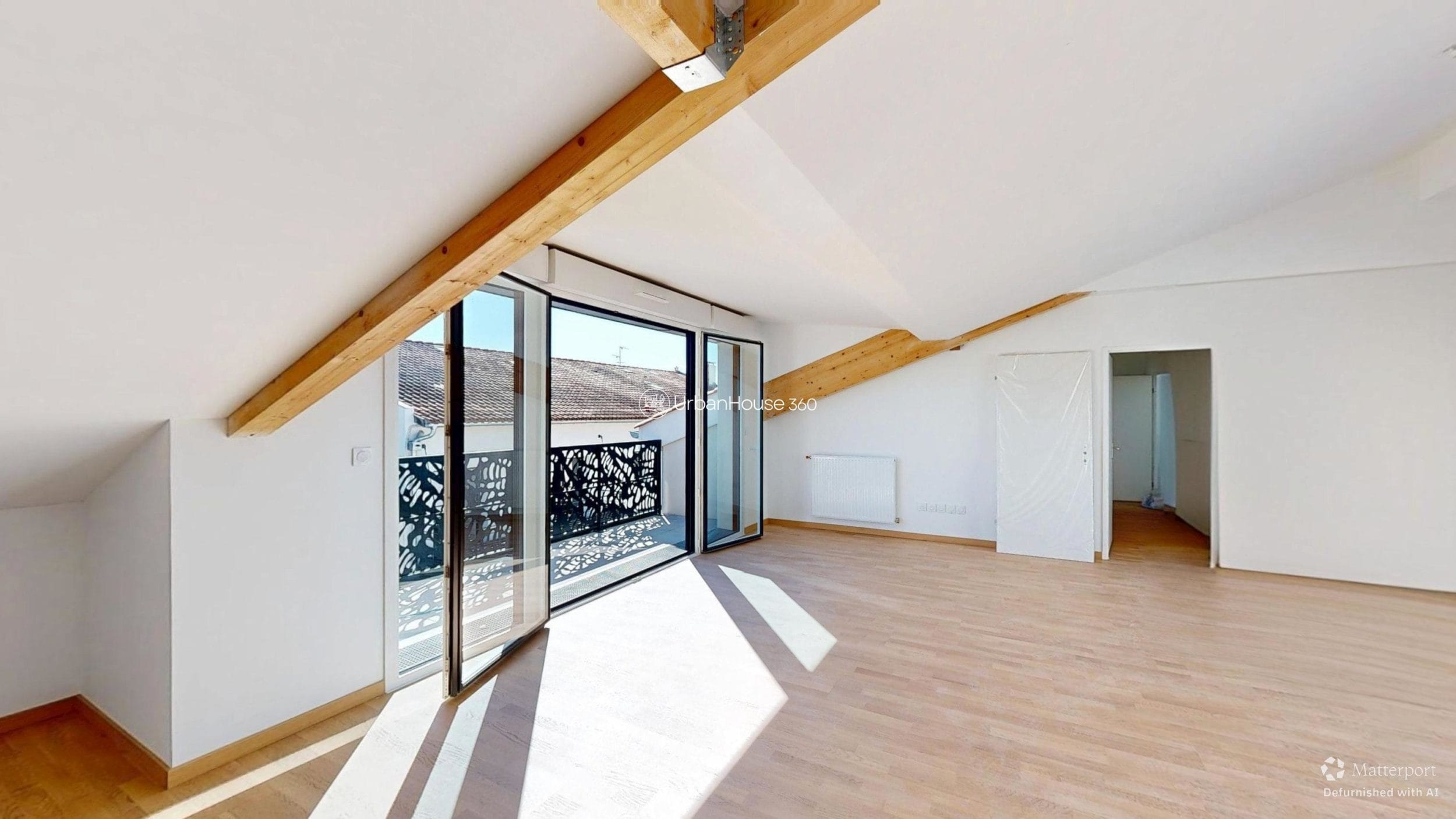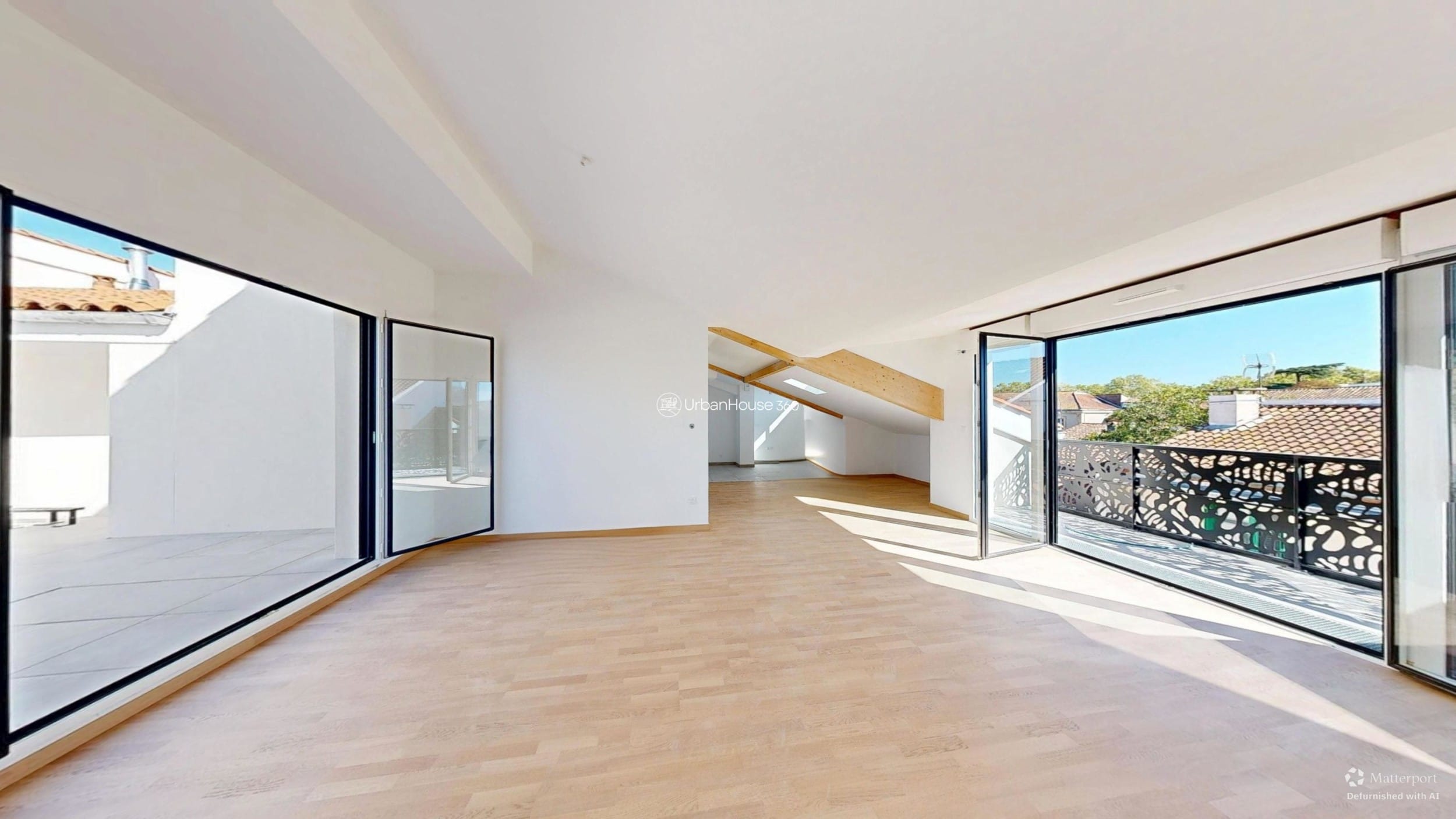 La lumière traverse l’espace, glissant sur les poutres apparentes, révélant la douceur du parquet, ouvrant l’horizon sur le ciel bleu toulousain.