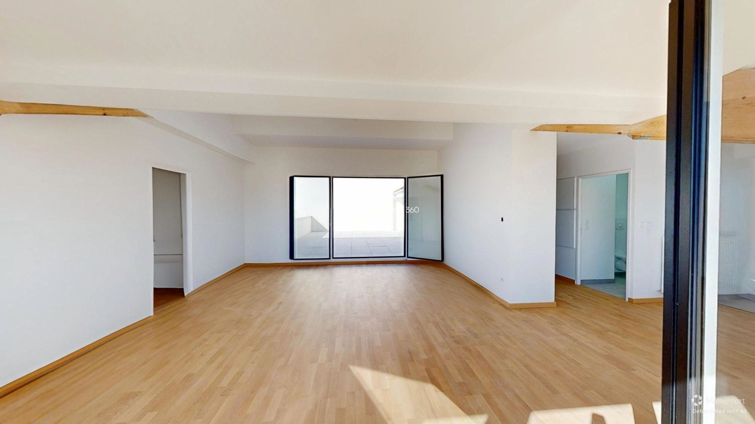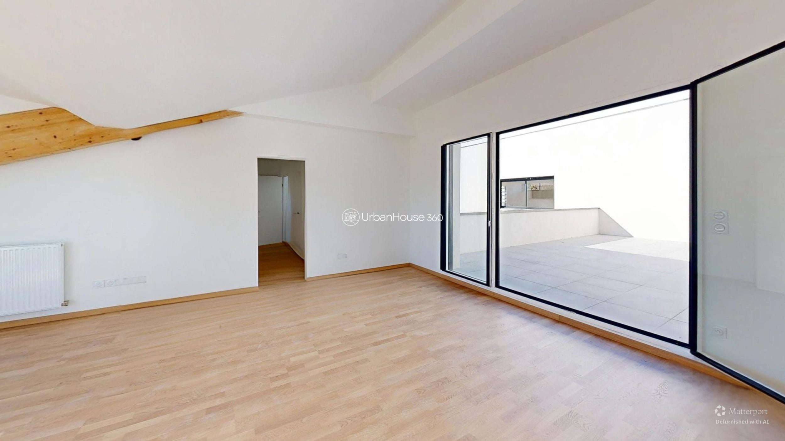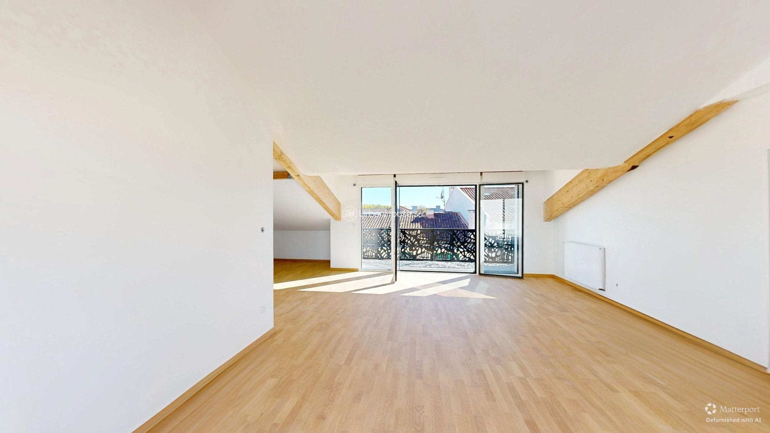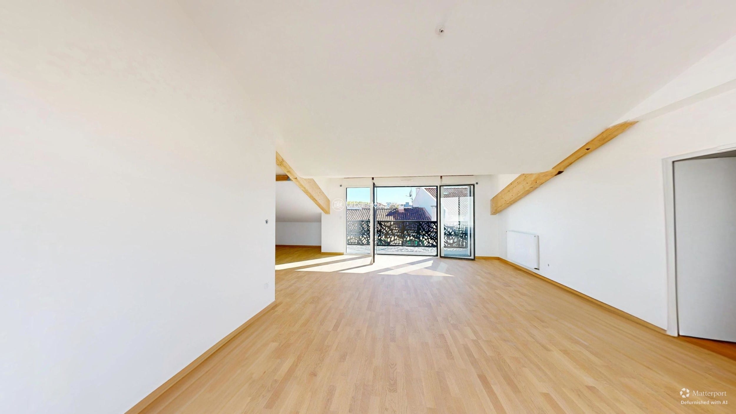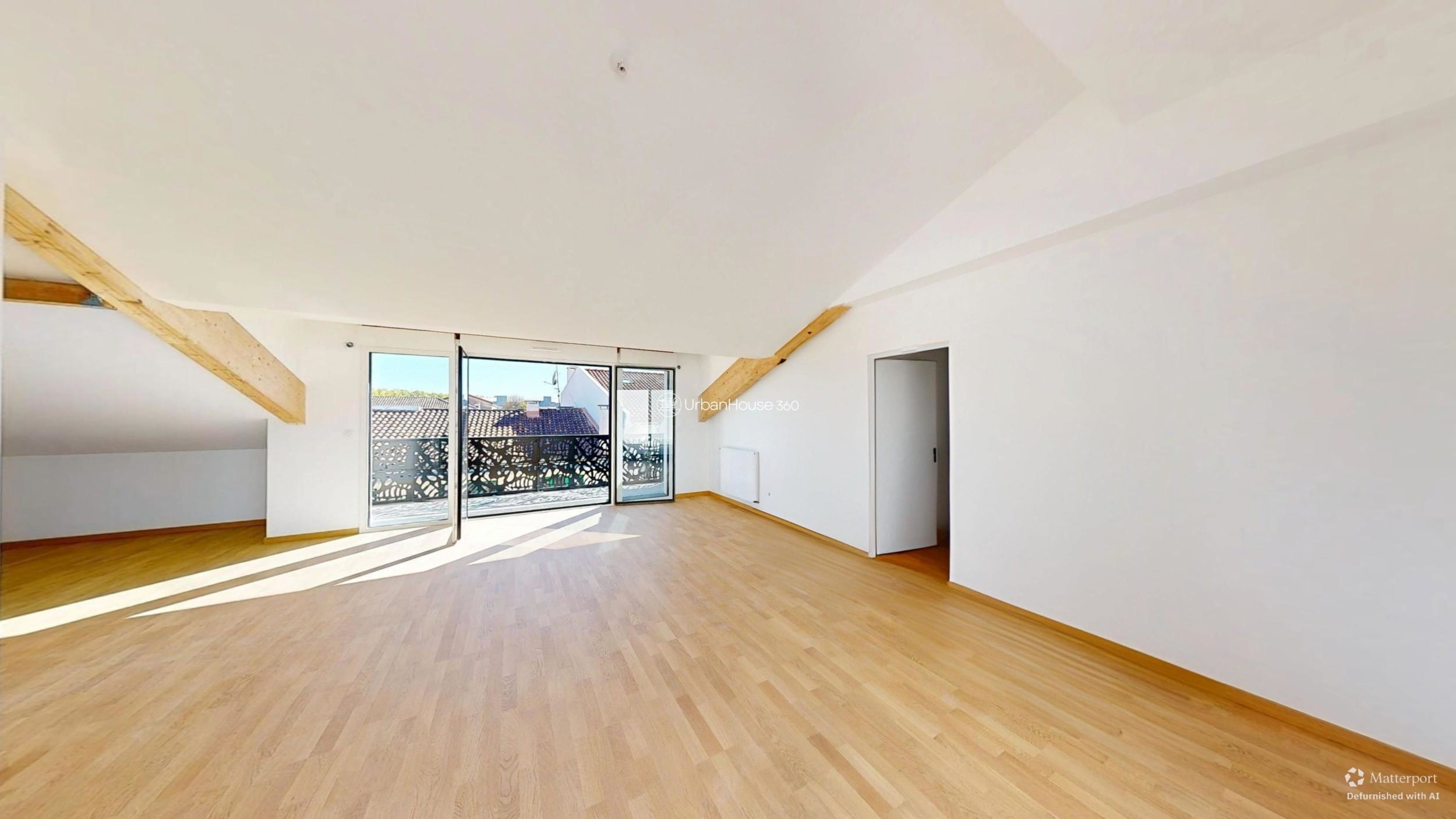 La lumière traverse l’espace, glissant sur les poutres apparentes, révélant la douceur du parquet, ouvrant l’horizon sur le ciel bleu toulousain.